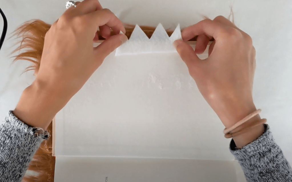 6. Use your fingers to bend the felt in place so they don’t awkwardly stick straight out of the mouth.